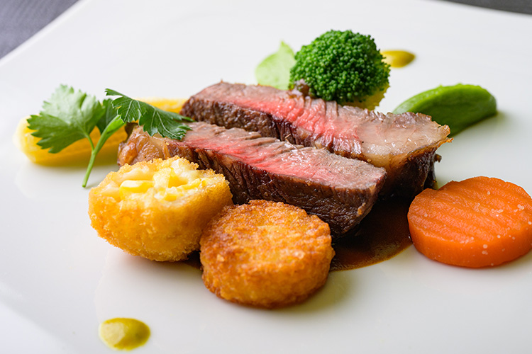 A5松阪牛ロース肉のステーキ 温野菜添え