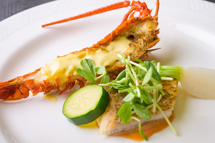 三重県産伊勢エビと伊勢真鯛のポワレ 菜の花のソテー 二種のソース