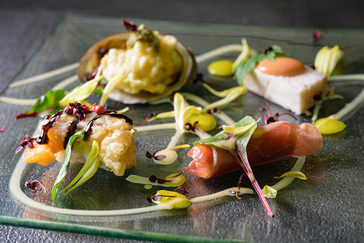 エビとアナゴのアンサンブル バルサミコソース